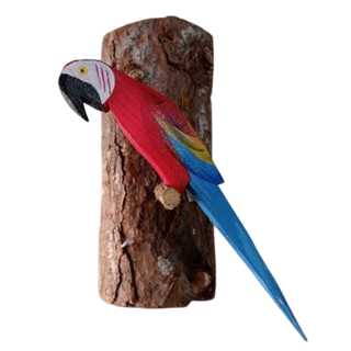 Arara esculpida em madeira e pintado manualmente,nas cores reais dos mesmos.